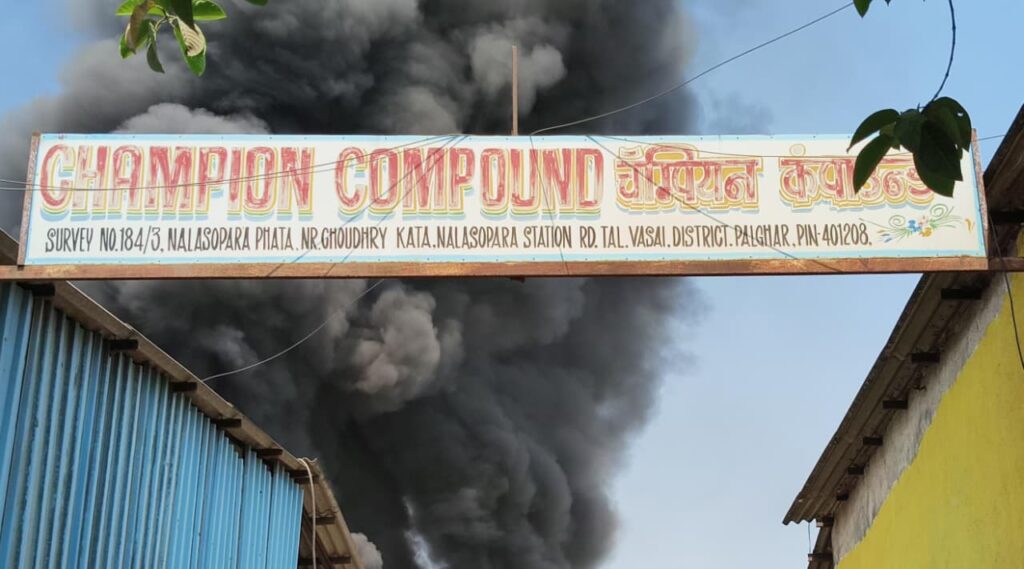 वसई-विरार।वसई-विरार के नालासोपारा पूर्व स्थित चौधरी वजन कांटा के सामने चैंपियन कंपाउंड में सोमवार सुबह करीब 11:30 बजे एक प्लास्टिक कंपनी में भीषण आग लगने से इलाके में हड़कंप मच गया। आग तेजी से फैलने के कारण दूर-दूर तक काले धुएं का गुबार दिखाई देने लगा, जिससे आसपास के लोगों में अफरा-तफरी का माहौल बन गया।