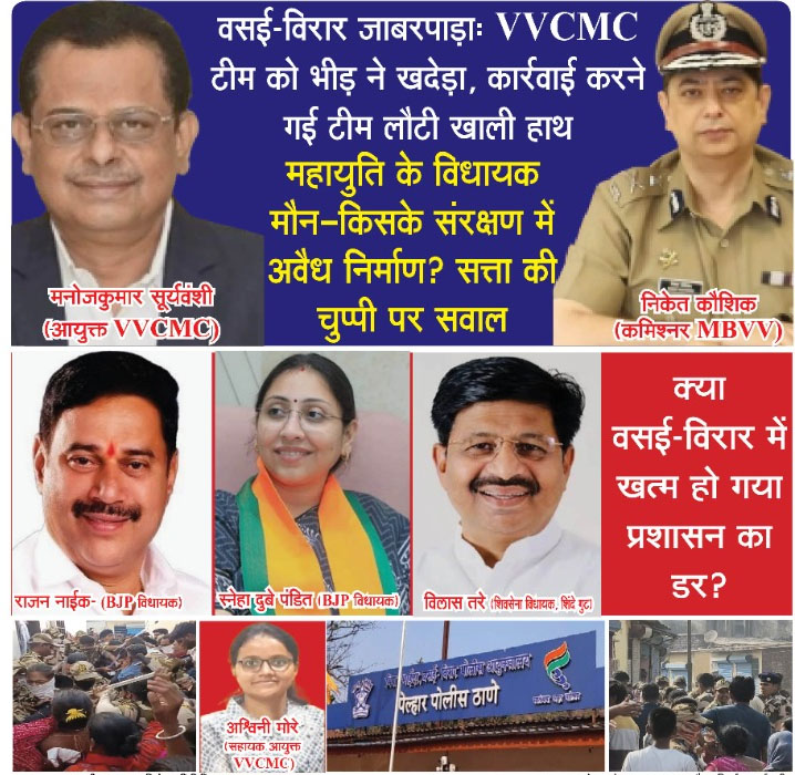 वसई-विरार। गुंडाराज खत्म करने के दावे के साथ सत्ता में आई भाजपा के राज में क्या सरकारी अधिकारी ही असहाय हो गए हैं? क्या वसई-विरार में कानून का राज है या भीड़तंत्र का? पेल्हार पुलिस स्टेशन अंतर्गत नालासोपारा पूर्व के जाबरपाड़ा में 9 फरवरी 2026 को जो हुआ, उसने कई असहज सवाल खड़े कर दिए हैं।