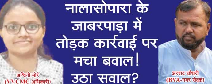 घरों की रक्षा या गुंडागर्दी? VVCMC टीम को रोकने के पीछे साजिशकर्ता कौन सनसनी अबतक | विशेष प्रतिनिधि नालासोपारा। वसई-विरार...