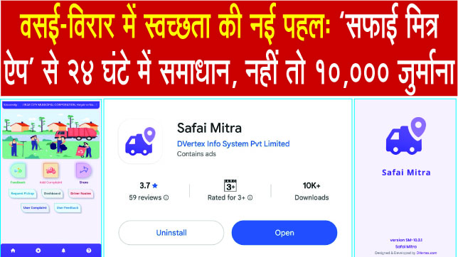 सनसनी अबतक | विशेष प्रतिनिधि वसई-विरार। वसई-विरार शहर महानगरपालिका ने शहर की सफाई व्यवस्था को आधुनिक और पारदर्शी बनाने के...