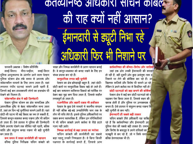 ईमानदारी से ड्यूटी निभा रहे अधिकारी फिर भी निशाने पर सनसनी अबतक | विशेष प्रतिनिधि वसई-विरार। मीरा-भाईंदर, वसई-विरार पुलिस आयुक्तालय...